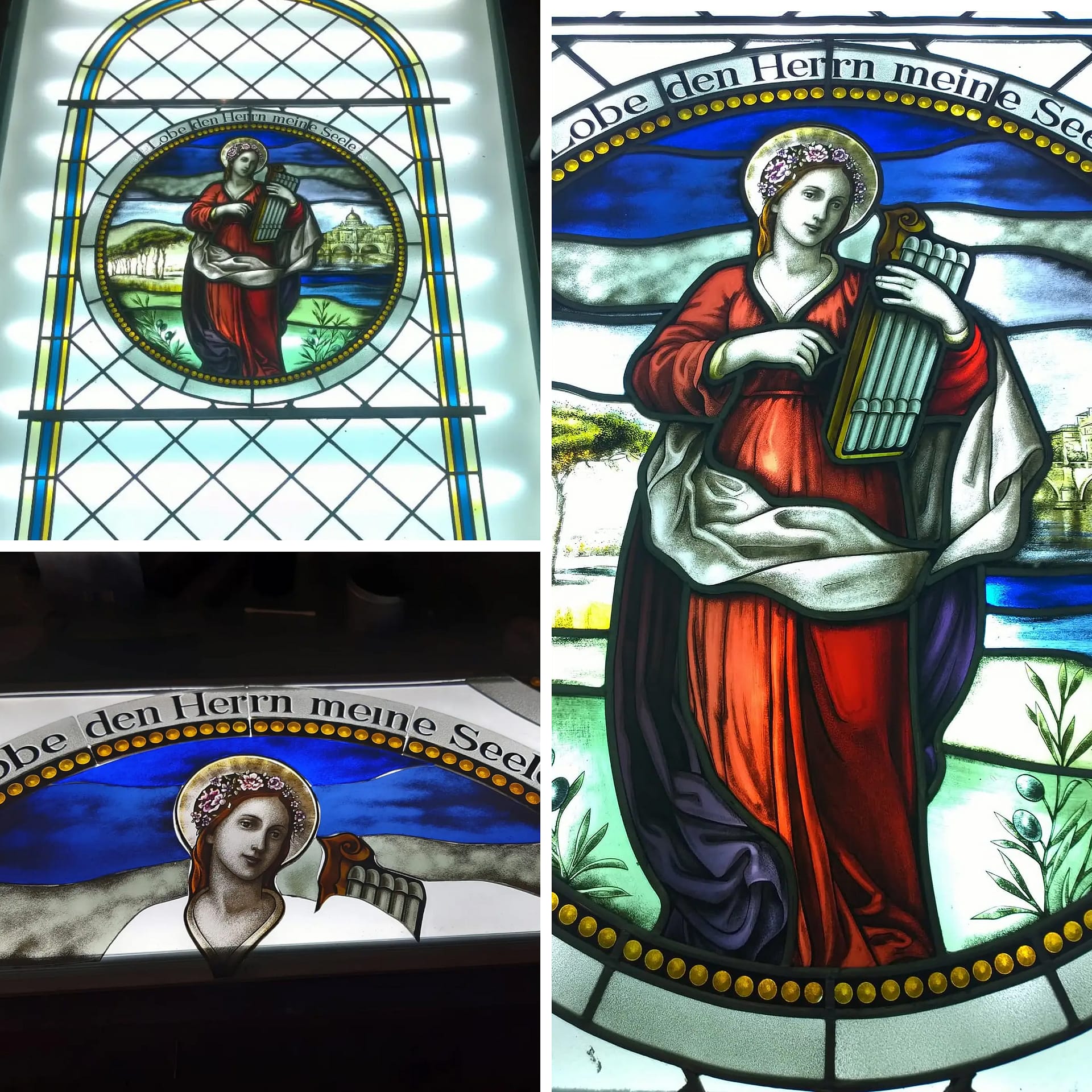 Unser Angebot umfasst die Techniken Glasmalerei, Bleiverglasung, Fusing, Betonverglasung, Mosaik und die Restaurierung von historischen Fenstern sowie deren Rahmenkonstruktion – unter Beachtung der Grundsätze der Denkmalpflege. Gerade letzteres ist ein Schwerpunkt unserer Glasarbeiten.